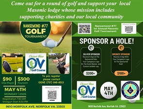 Services Rendered (my Small Business) as part of its Complimentary Services to the neighborhood is organizing The Nansemond #77 Masonic Lodge's first Golf Tournament in an effort to raise money for its continued charitable work. Please consider playing in this tournament and/or consider being a "Hole Sponsor"; may the fourth be with you!